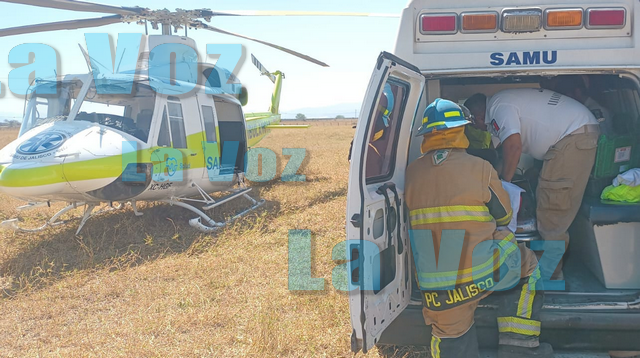 Debido a la gravedad del caso, al sitio también acudió la unidad aérea del SAMU Jalisco para apoyar en la atención prehospitalaria y el traslado inmediato del paciente.