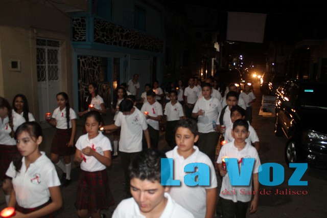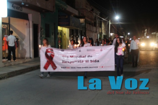 Bajo el lema “para garantizar la prevención y atención del VIH, HABLEMOS DE DERECHOS HUMANOS”, la marcha pacífica con el listón rojo y veladoras encendidas fueron los elementos que portaron los alumnos de las Escuelas Gordiano Guzmán, Técnica número 9, Conalep y Preparatoria, además de los integrantes del equipo de básquetbol Comusida Tamazula, quienes recorrieron la calle Ramón Corona hasta llegar a la explanada del Centro Histórico, donde el titular del COMUSIDA Tamazula, Miguel Ángel Mercado Ochoa, y director de Salud, agradeció a los asistentes su participación en la jornada de marchas llevadas a cabo en La Garita, Vista Hermosa, Contla y Tamazula, exhortando a los jóvenes a tomar conciencia en practicar una sexualidad responsable