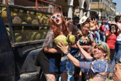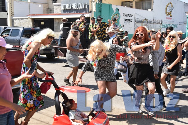 Las “Chicas Toreras” encabezaban la caravana que tenía como destino el recinto ferial, e iban por las calles generando un ambiente de risas y asombro a su paso. Entre los caracterizados se veía la complicidad que había a la hora de entrar a hacer desmadre en los negocios que iban encontrado en su camino, así como en el jugueteo con los conductores y personas que se encontraban alrededor.