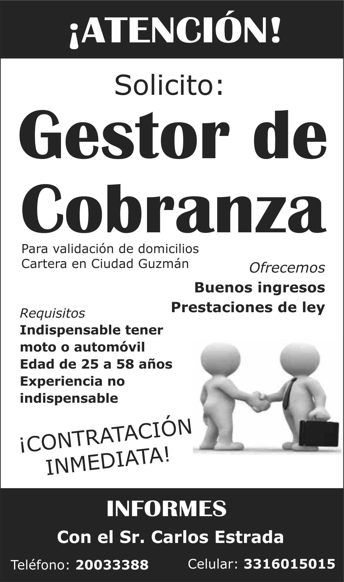 Bolsa de Trabajo Published on febrero 7th, 2016 | by lavozsur 0 Se solicita Gestor de Cobranza Related posts: Se solicitan gestores de crédito Importante empresa solicita chofer con licencia federal Importante empresa solicita agente de ventas en el ramo ferretero About the Author lavozsur Con 35 años de trayectoria, somos el periódico número 1 en información y análisis de la región Sur de Jalisco. Related Posts Reparto de utilidades BIMBO 2016, a partir del 1 de junio → Únete al equipo de asesores de Consol Negocios → Aceros Murillo solicita chofer → Empresa líder solicita vendedor con experiencia en el ramo agroindustrial → Deja un comentarioTu dirección de correo electrónico no será publicada. Los campos obligatorios están marcados con *Comentario * Nombre * Correo electrónico * Web Guardar mi nombre, correo electrónico y sitio web en este navegador para la próxima vez que haga un comentario. Δ