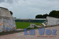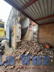 En la colonia Ejidal la barda de un segundo piso se derrumbó y cayó sobre el tejabán de una vivienda, por fortuna no hubo personas heridas.