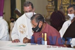 Por ello, cada jefe de cuadrilla se acercó con su estandarte y se colocó a los pies de las Sagradas Imágenes, para prometer seguir teniendo a San José, la Virgen del Rosario y el Niño Jesús como protectores contra las distintas calamidades que afectan a las familias; seguir viniendo en peregrinación a honrar a San José y a seguir trabajando en cada una de las cuadrillas para vivir como hermanos, sin envidias ni competencias, así como seguir promoviendo entre los niños y los jóvenes esta bonita forma de honrar a San José.