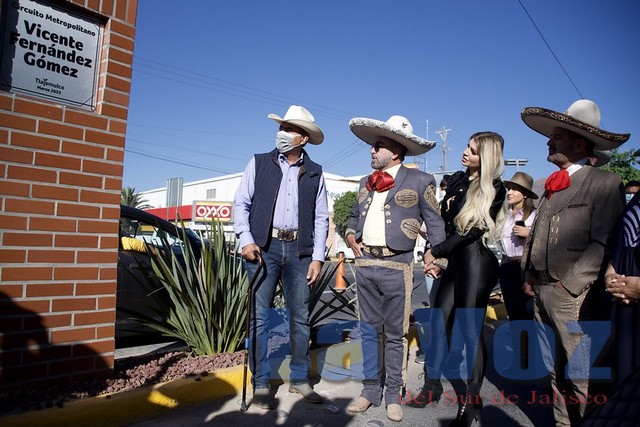 “Estamos agradecidos con todo el Gobierno de Tlajomulco, con Salvador, y con todos ustedes y todos los medios de comunicación, y muy honrados con que esté circuito, esta avenida, lleve el nombre de Vicente Fernández Gomez”, expresó Fernández Abarca.