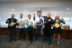 En la presentación del evento también estuvieron presentes los campeones de boxeo profesional, Irma “la Güerita” Sánchez, Jorge Vaca Dueñas y Óscar “el Chololo” Larios.