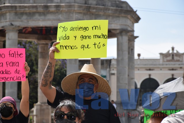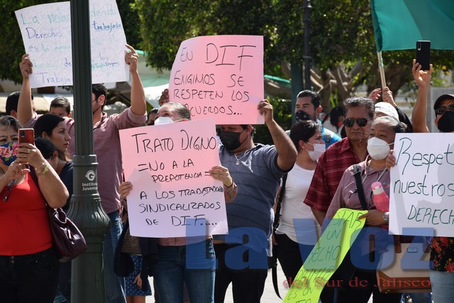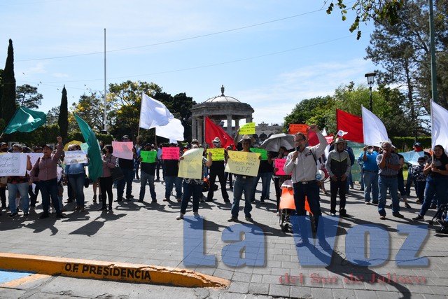 CIUDAD GUZMÁN, JAL., (ES).- Trabajadores del Ayuntamiento de Zapotlán el Grande llevaron a cabo una manifestación frente al palacio municipal, donde denunciaron mal uso de la nómina, hostigamiento por parte de los directivos y falta de estabilidad laboral.