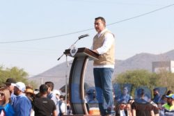 “Estamos el día de hoy en este espacio, sin lujos, a pleno rayo de sol, pero con mucho ánimo y mucha energía porque fue un camino muy largo, un camino en el que veo muchas caras conocidas, mucha gente que me acompañó en todo ese recorrido”, comentó el Gobernador.