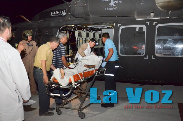 La gravedad de las lesiones obligó a que los doctores determinaran que era necesario efectuar un traslado de emergencia al Centro Médico Nacional de Occidente, para ello fue necesario el uso de un helicóptero de la Fiscalía General del Estado de Jalisco la misma noche del día que ocurrió el accidente, el cual despegó del helipunto de Ciudad Guzmán.