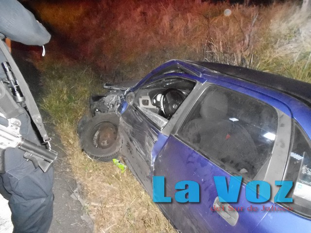 TUXPAN, JAL., (ES).- Tres personas lesionadas y cuantiosos daños materiales fue el saldo que dejó el choque de frente entre dos vehículos compactos, donde los causantes del percance se dieron a la fuga pero se presume que resultaron gravemente heridos. El accidente tuvo lugar el sábado 23 de noviembre alrededor de las ocho de la noche, cuando se reportó que sobre el kilómetro 55 más 300 de la carretera libre Guadalajara-Colima, a la altura del sitio conocido como la Chabanda. Rescatistas de la Unidad Municipal de Protección Civil de Tuxpan se trasladaron al sitio donde encontraron un automóvil Chevrolet Chevy en color azul, modelo 2006 y con placas de circulación 599-TYK del Distrito Federal que era conducido por el señor Héctor Contreras Reyna de 41 años de edad, quien resultó lesionado al igual que la señora María Guadalupe García Barajas de 23 años y el menor Jesús Miguel Hernández García de dos años de edad, quienes fueron enviados al Hospital Regional en Ciudad Guzmán para que recibieran atención médica. Todos los tripulantes del vehículo subcompacto eran vecinos del municipio de Quesería, en Colima. Dicha unidad fue impactada de frente por un automóvil Nissan Tsuru en color blanco y con placas de circulación JAB-7999 del estado de Jalisco que quedó totalmente destrozado, por lo que se presume que sus tripulantes resultaron seriamente lesionados aunque ello no fue impedimento para que se dieran a la fuga. Personal de la Policía Municipal de Tuxpan y oficiales de la Policía Federal Preventiva tomaron conocimiento de los hechos con la finalidad de esclarecer el siniestro y deslindar responsabilidades.