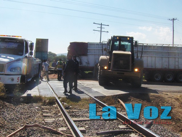 ZACOALCO DE TORRES, JAL., (ES).- Una persona lesionada y cuantiosos daños materiales, así como el cierre temporal de la carretera fue el saldo que dejó el choque de un camión de carga contra el ferrocarril, luego de que un imprudente trailero intentara ganarle el paso al tren. El accidente tuvo lugar la mañana del sábado 7 de diciembre sobre el kilómetro 20 de la carretera libre Guadalajara-Colima, a la altura de Zacoalco de Torres donde se reportó el aparatoso accidente que dejó saldo de una persona gravemente herida. Según testigos un trailer de doble remolque Kenworth Kenmex blanco imprudentemente quiso ganarle el paso al tren sin lograrlo impactándose con el segundo remolque, en el carril contrario otro trailer cargado de milo se confió y sin visibilidad también intento ganarle el paso sin lograrlo siendo impactado de lleno en la cabina del conductor por el remolque y la máquina que colisionó con las pesadas unidades. Al lugar se trasladaron ambulancias de los servicios médicos municipales, elementos de Seguridad Ciudadana y Protección Civil del municipio, quienes rescataron al chofer de una de las unidades de entre los fierros retorcidos de lo que quedo de la cabina. El lesionado identificado como Julio Ayala Velasco 43 años vecino de la Colonia Vicente Guerrero en el municipio de Zapopan, fue trasladado al Hospital Central Quirúrgico de Guadalajara, para ser atendido de urgencia ya que presentaba severas lesiones. El tramo carretero fue cerrado a la circulación por más de dos horas, debido a los trabajos periciales del percance y del retiro de las unidades.