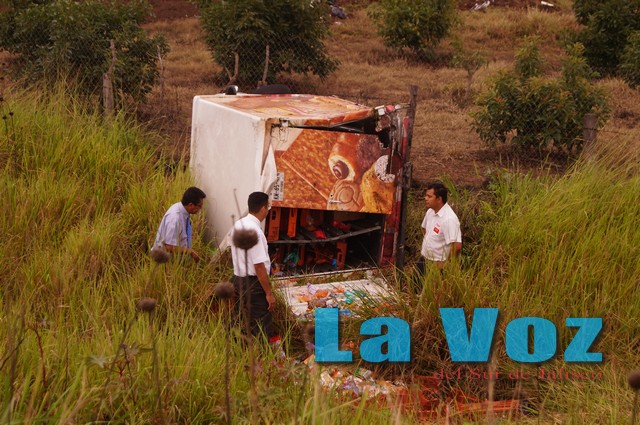 ZAPOTILTIC, JAL., (ES).- La mañana del martes 16 de junio cuando una camioneta Nissan Estacas, perteneciente a la empresa Bimbo, se dirigía con rumbo al municipio Tuxpan por la carretera libre a Colima, al pasar el puente que cruza la autopista, el conductor perdió el control del vehículo lo que provocó que este saliera hacia su lado derecho y cayera fuera de la carretera volcada sobre su costado izquierdo.