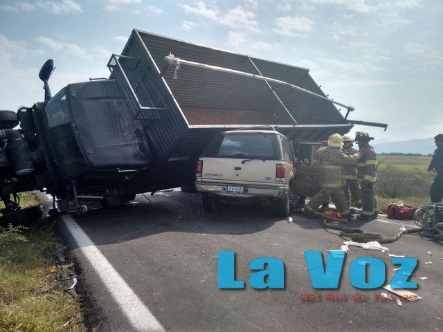 SAYULA, JAL., (ES).- Una persona muerta y cinco más lesionadas, fue lo que dejó como resultado un fuerte choque ocurrido la mañana del sábado 11 de abril entre una pesada unidad de carga y una camioneta en la carretera libre Guadalajara-Colima.