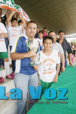 CIUDAD GUZMAN, JAL., (ES).- En un gran ambiente en el estadio municipal Santa Rosa se llevó a cabo la gran final de la categoría Infantil de Primera entre el Unión de Curtidores contra el Zapotitlán donde los curtidores se llevaron la corona. La verdad que se esperaba un encuentro más parejo dado que los dos equipos calificaron en primero y segundo lugar, los de Zapotitlán encabezaron la tabla de posiciones durante todo el torneo y había expectativa de que se pudieran coronar, pero los Curtidores dirigidos por un viejo lobo de mar en las liguilla, háblese de veteranos de empresarial y ahora de niños, me refiero al director técnico  Miguel Ángel “Panchito” Aguilar quien viene trabajando con este grupo de jovencitos desde la categoria Pony auxiliado por Jorge Adrian Valencia Medina y Oscar Fajardo Campos. Pues bien fueron los visitantes quienes desde el silbatazo inicial se fueron al ataque buscando el gol que les diera la confianza de manejar el encuentro, mientras que los Curtidores colocaron en la media cancha a Octavio Javier “El Peludito” Jiménez López como medio escudo para controlar los embates del rival y mandar balones a su delantera, se jugaba el minuto 10 cuando pierde curtidores un balón en la media cancha y desde fuera del área al ver al portero adelantado Diego Abel Venegas Pamplona anota el 1-0 para el Zapotitlán, dos minutos más tarde el Curtidores emparejaba el marcador con gol de Octavio Javier “El Peludito” Jiménez López, sobre el minuto 14 viene de atrás Erick Barrera Chávez y anota el 2-1 para darle la vuelta al marcador, el Zapotitlán busca reaccionar pero cuando mejor jugaban viene Oscar Aguilar Ruiz y desde fuera del área anota el 3-1, asi los manda el árbitro a descansar. Para la segunda parte ante las notas musicales de una banda que trajeron los visitantes no fue suficiente para motivar al Zapotitlán quienes al minuto 19 avance por derecha de Oscar Aguilar Ruiz quien llega a línea de fondo, manda centro raso para que llegue de atrás Octavio Javier “El Peludito” Jiménez López y anote su doblete y el 4-1 final para que de esa forma se corone el Unión de Curtidores. El tercer lugar fue para los Tecos que vencen 3-2 a Tigres, la premiación estuvo a cargo de Miguel Bonilla en representación del titular de Promotoría Deportiva y de Arnulfo Magaña Castillo presidente de la liga Infantil y Leonardo Haro secretario de la misma.