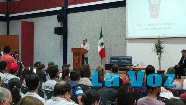 CIUDAD GUZMÁN, JAL., (ES).- En un ejercicio por la participación democrática, la Rectoría del Centro Universitario del sur a cargo de Ricardo Xicoténcatl García Cauzor, la mañana del martes 12 de mayo el candidato a la Presidencia Municipal de Zapotlán el Grande, Roberto “Chino” Mendoza, dio a conocer su plan de trabajo con un documentado diagnóstico del municipio y respondió a las preguntas formuladas por académicos y alumnos de las diferentes carreras que se ofertan aquí, cuya respuesta cumplió las expectativas de la concurrencia por los aplausos y las expresión escuchadas después de cada contestación.