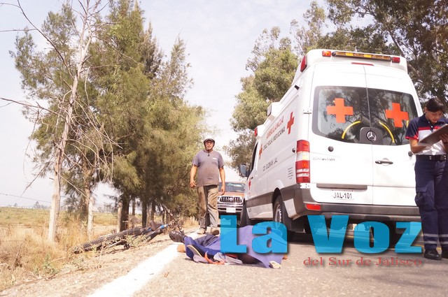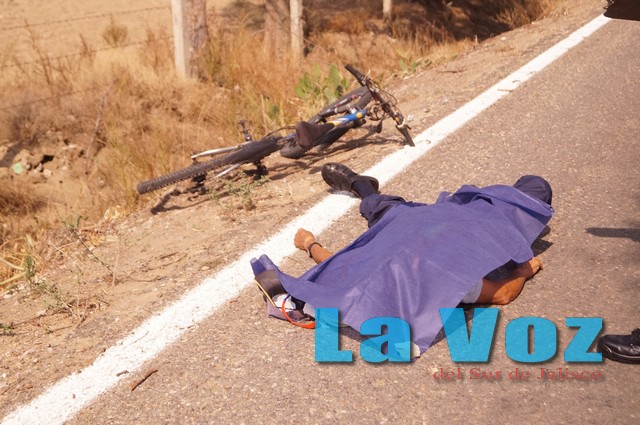 CIUDAD GUZMAN, JAL., (ES).- Un sujeto que era vecino de la colonia El Triángulo perdió la vida al caer de su bicicleta cuando circulaba por la carretera que comunica a Ciudad Guzmán con Atequizayán. Los hechos ocurrieron la mañana del miércoles 21 de mayo a la altura del kilómetro 3.5 de la vía, después de que automovilistas que pasaban por el lugar observaron la presencia de un hombre sobre el pavimento por lo que al detener su marcha se percataron de que se trataba de un hombre de edad avanzada el cual había caído de su bicicleta. De inmediato dieron aviso a los servicios de emergencia por lo que en cuestión de algunos minutos personal de la policía municipal arribó al sitio sin embargo el hombre no presentaba signos vitales. Fueron paramédicos de la Cruz Roja Mexicana los que finalmente confirmaron el deceso del hombre por lo que se dio aviso al agente del Ministerio Público y el Servicio Médico Forense El cuerpo de la víctima fue identificado como José de Jesús Rosales Rangel de 60 años de edad, vecino de la colonia El Triángulo y de acuerdo a algunos trabajadores de la zona, el hombre perdió el equilibrio de su bicicleta tras el paso de un camión de volteo, provocando su caída. El cuerpo del occiso fue trasladado a las instalaciones del Servicio Médico Forense para que se le practicara la autopsia correspondiente y fuera identificado por sus familiares.