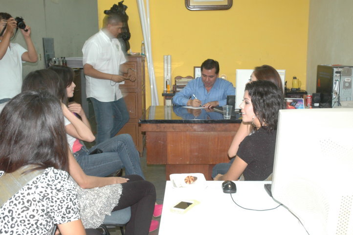 Acompañadas del director del certamen Señorita Zapotlán 2012, Jesús Abrica, las cinco aspirantes a la corona fueron recibidas por el director de La Voz del Sur de Jalisco, Alfredo Pérez Herrera.