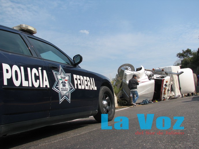 TUXPAN, JAL., (ES).- Tres personas lesionadas, cuantiosos daños materiales y el cierre de la autopista por más de dos horas fue el saldo de una volcadura sobre el kilómetro 108 de la autopista Guadalajara-Colima.