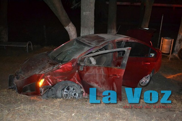 CIUDAD GUZMAN, JAL., (ES).- Tres personas lesionadas y cuantiosos daños materiales dejó la volcadura de un vehículo compacto en el ingreso norte de Ciudad Guzmán. El accidente se registró la noche del domingo dos de marzo en el kilómetro 1.5 de la carretera libre Guadalajara-Colima, en el tramo comprendido entre el Centro Universitario del Sur y la laguna. En el sitio, personal de Seguridad Pública y Tránsito Municipal encontraron volcado un automóvil Chevrolet Sonic en color tinto, modelo 20013 que era conducido por la señora Martha de la Cruz, de 28 años de edad. Debido a que el vehículo dio varias volteretas, resultaron lesionados un niño de siete años de edad y un bebé de un año y 9 meses, quienes de inmediato fueron trasladados a un hospital de la ciudad para que recibieran atención médica.